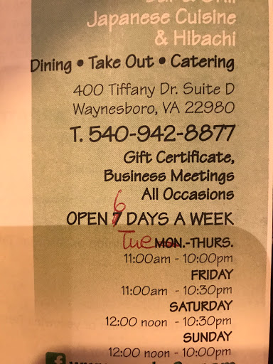 Really nice japanese atmosphere. The sashimi and sushi were very fresh with generous portions. Waynesboro you have a gem. Worth a drive over from Staunton.