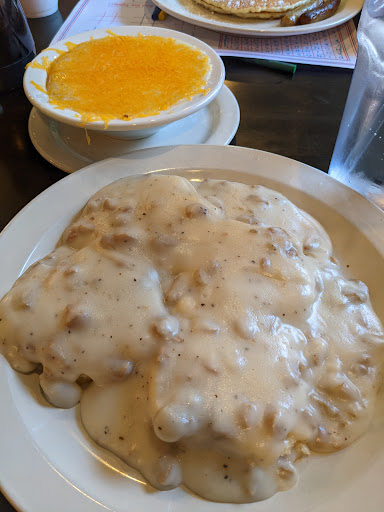 I am rating because we went here based on the reviews. It was not good. Cracker Barrel pancakes are way better and thats no really saying much because well its cracker barrel. I specifically asked if they had real maple syrup was told of course. How a pancake house has no idea what REAL syrup is is beyond me but it was definitely table syrup. Sorry but huge difference. Got a hot chocolate it was not even drinkable. Almost all powder no water just tasted horrible. My husband said the grits tasted like pepper and that is it. Pancakes were sub-par. Anyways it served the purpose of us having been fed but if you want a nice breakfast dont believe the other reviews.