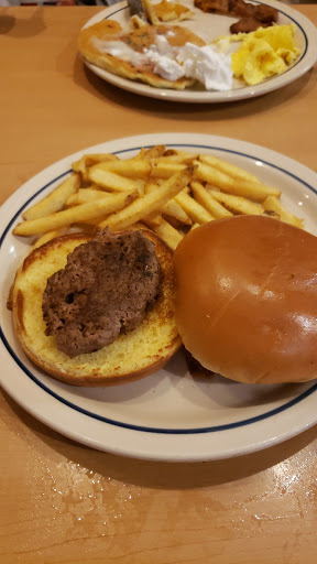 There is something about iHOP I really like. But this place isnt one of the better places. Service is usually mediocre and while the food is okay to almost good, it takes awhile to get the order correct. For some reason the manager ends up helping his wait staff get initial drinks, order to the kitchen, from the kitchen, etc. The last two times here the wait staff completely forgot to ask if we wanted desert. This is in keeping in that after taking the order and bringing food, the only time youll see your wait staff is when the walk by for some reason from the front to the back of the restaurant. I keep hoping that theyll get it all together, but they keep failing me.