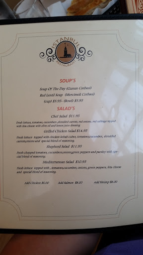 Our goal is to give you best experience that we can give. Istanbul restaurant start operating july the 17th 2015 and every since then we had great feedbacks on our food on our dinning room and on our service. Of course we are going to accomplish the best but in the mean time we are asking our customers to help us to make this place even greater please tell us what was your experience and how was it? what should be change and how could we make the changes to make istanbul restaurant in the way that they would like to see. Please let us know before you leave so we can move forward for those changes to make it better. Thank you all so much for giving us the opportunity to prove ourselves to you.