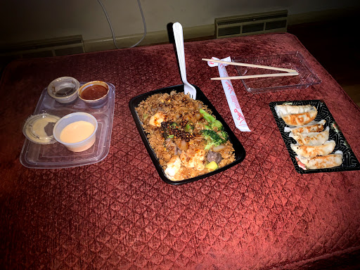 Im gonna give this a 4 star because they are really trying and Ive been in worst places. The place is nice, cool paintings and nice seating. Parking can be a pain because its by the college. The food is not bad but the rice isnt sticky but maybe its because i got fried, it looks like medium grain rice. The steak was good along with the shrimp and veggies. The white sauce was ok but not a lot of flavor. The price was $15 for a steak and shrimp combo and a drink. Im not in college but even for me thats a little steep for decent food. Hibachi over by Ross and home depot is better. They do have ramen here so gonna try that next. One thing is i cant image they are so busy that they cant take out the trash. Worth trying maybe they are better at making soup.