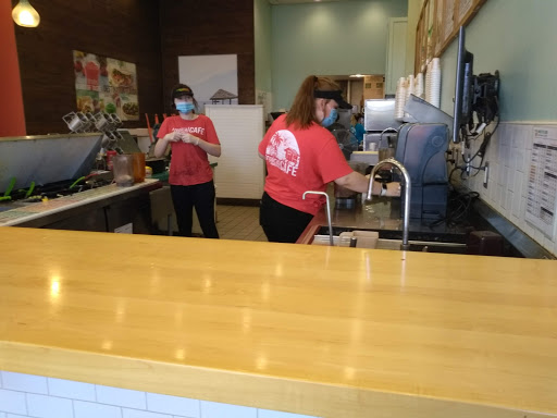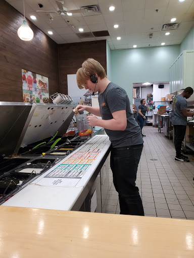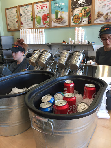 The woman who took my order greeted me with a smile and asked me how I was doing - which doesnt happen often in this day and age. I wasnt sure what I wanted and she suggested a great flatbread sandwich (Hawaiian BBQ) and so I ordered it (and LOVE it). They made my Island Detox with fat burner smoothie (no ginger and no sugar added) and it was PERFECT. The man that made my smoothie wrote a very kind note on the cup, "Smile, you deserve it!" and it totally turned my day upright. The place is clean, beautifully decorated, and busy but they get the job done with a smile on their face in a decent amount of time! I have no complaints and no constructive criticism. Excellent overall!