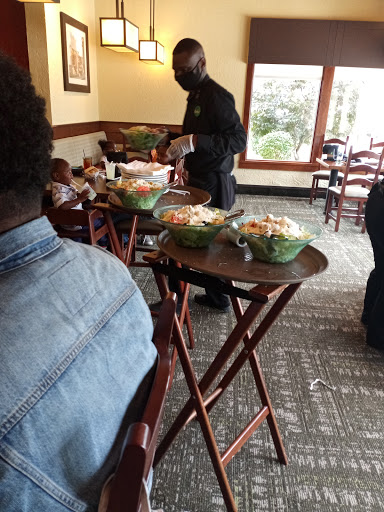 Typical design and function for an Olive Garden. I love the chains salad. I dont know if this is now a thing with Olive Garden, but the have a whole separate service desk for take out. The staff is great. I recently had a screwed up online order (who knew there is a Woodbridge in New Jersey). They promptly fixed it and treated us in the bar while we waited for the super fast replacement. Kudos.