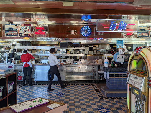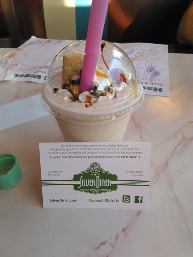 I love the Silver Diner. Not only is there a large selection of dishes on their menu, not only do I love the tiny jukeboxes, but you can a dish that is also healthy for you, cooked with local produce, and potions are huge. Now, the only thing is sometimes I do feel like the prices are a tad high if you are worried about a budget, and if you have a large family this is likely the place you want to go on holidays or birthdays, not weekly. The service is always good but there is going to be a waiting line which MAY go out the front door. And the restrooms will likely be busy. This is a great diner with a good atmosphere, clean tables, and plenty of reasons to go there. It is NOT just the chain either - I have been to a horrible Silver Diner. THIS place is well managed. It is also ALWAYS going to be very, very, very crowded and large groups will likely have to wait longer than a single person or a couple who can grab a place at the counter top. But their breakfasts are to die for and their Reuben sandwiches are on my top five list of all time favorites. And to be honest there are only two sandwiches on that list. Im picky about my Reuben sandwiches.