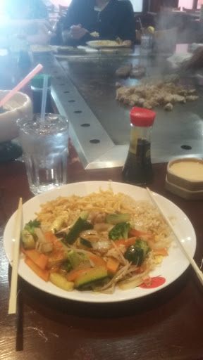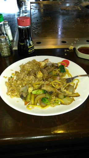 Food was outstanding. I ordered chicken, rice and vegetables, my wife ordered the same except with steak from the teppan-yaki menu. They do have a separate sit down area where you can get food from the kitchen at but if you want the excitement and show of the open grill in front of you, you have to order from the teppan-yaki menu. All of our food was fantastic and the chef was very skilled. His tricks were good, not great but if youve been to any teppanyaki place before, youve probably seen it all already. No surprises there. The total for both our meals was $37. Expect to pay at least that much because our meals were average price wise and we had water to drink, no appetizers or dessert. We went on a Tuesday night and there were less than ten other people there. It was very quiet and the only real noise you could hear was the chefs. The restaurant itself is nicely decorated and conservative. It is a very nice place for groups though if you have more than ten a group, you will have a hard time fitting around the grills. Overall, I was completely satisfied and quite impressed. I will eat here again. Neither of us got sick after so Im not sure if we got lucky or what but no problems there. Great place!
