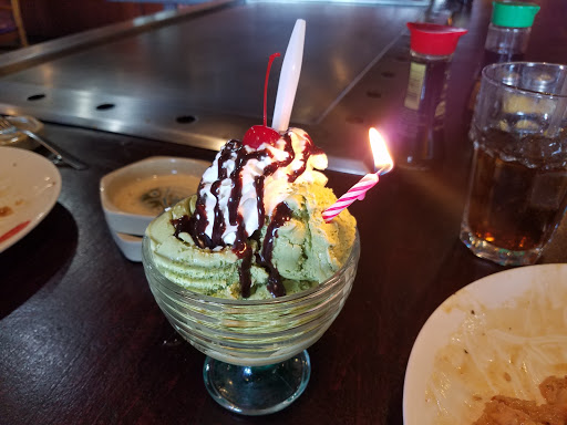 The food was amazing as was the teppanyaki chef. The waitress was pretty good. The show was a lot of fun. It is on the pricey side but if you eat at the movie theater across the parking then you will think it was a good deal. ;) We went in at around 6 on a Monday night but didnt eat until around 7. They werent busy. In the gift shop they advertise a coupon if you come in on a weekday. There was no date listed. We asked about it but the server didnt know anything about it. She said she would find out. I saw her talking to someone else and asked if she had found out anything as we were leaving. She went and asked but said they werent doing it anymore. When I asked her why it was still up and that they should honor it she just repeated that they werent doing it anymore. The fried rice were the best Ive ever had. My two year old wouldnt quit eating! My whole family loved the experiance except for the service.