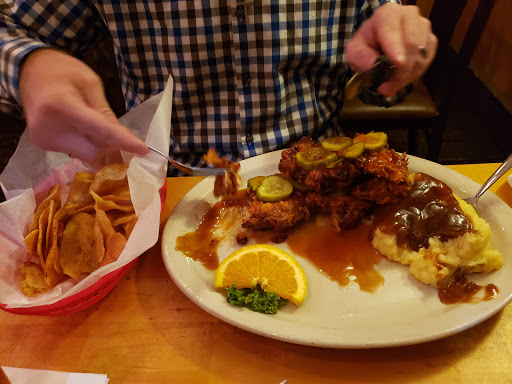Highly recommend this place we ordered the jalapeño poppers and they were wonderful. My husband ordered the Salmon and said it was delicious. I had the angry chicken and it was wonderful. Everything was cooked fresh and the vegetables were yummy and fresh. They have a full bar which was nice. The staff was very friendly and told us about neat things to go visit in town! Really loved this place and will definitely be back.