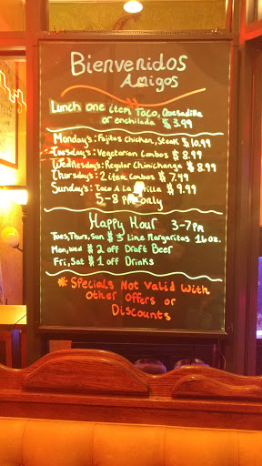The cab driver recommended 3 Amigos over the chain restaurants near my hotel. I walked over and was very happy with the food, the service, and the prices. It was a weekday evening, so Im not sure if there were happy hour specials going on. I got more food than I could eat and a large beer (liter-sized) for $16. That cant be beat. Take Adinas advice, the pollo monterrey is delicious.