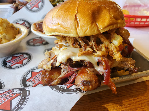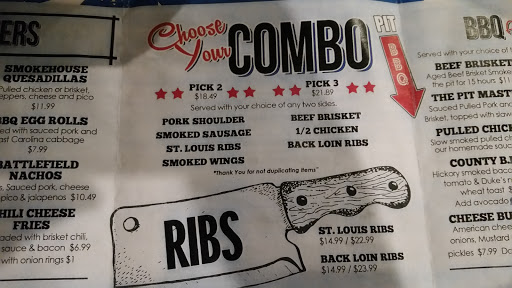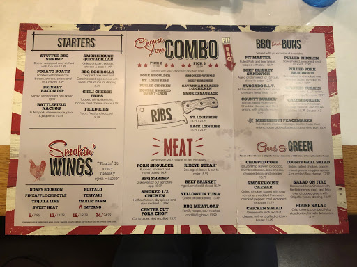 We decided to visit this place, because wanted some BBQ ribs. I picked it after reading good reviews. Weve got star spangled combo - it was huge amount of food (ribs, brisket and chicken plus 2 sides) for very good price. Plus they give you some corn bread muffins while you waiting for food. It takes reasonable time to get your meal and food is hot and fresh. They top up your soft drinks too. There is a bar area with various drinks (though I didnt check it out, so cant say anything about drinks). The meats were really good. The rib rack was real hit - I love the sauce they using. The client service was good. The interior is interesting and place looks clean. They have TVs where you can watch sports and I liked the music they played at the background. I would definitely come back here if I would live in area. If you visiting near by and like BBQ - you need to visit this place.