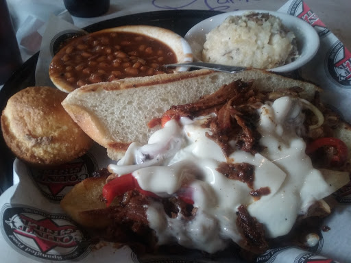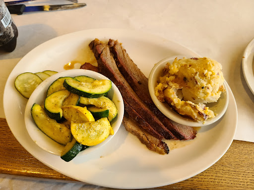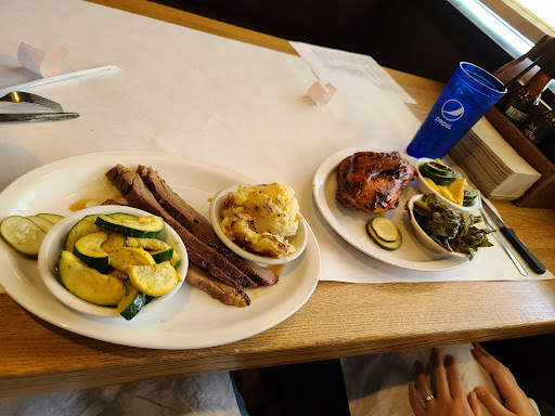 I was pleased with the service, the amount of food you get for the price, and the delicious cornbread.( Cracker Barrel would be better if they steal this recipe) The atmosphere is nice, a little loud, but this place is crowded every time I go, so no big deal. Seasoned fries (think Bo Jangles), warm potato salad (think Cracker Barrels hasbrown casserole, only better), bbq beans, (really baked beans with BBQ thrown in for seasoning, and very delicious). All their food is very flavorful and thats why people keep flocking to this place, me included. Brisket and BBQ meatloaf, so good. If you love BBQ, and you like to try different things, they have at least six different BBQ sauces at your table to dip to your pleasure. I am very proud to say they got Eastern Carolina sauce right. (Its best on pulled pork) just make sure you dont over do it, a little goes a long way. My favorite for ribs though, is still Kansas. Now Im sure youre wondering why all this praise and 4 stars? Food was great, but the ribs I got were cooked a little too fast, which made them tough, and not take in enough flavor, but again the rest was delicious and everyone else at the table enjoyed their meal. I highly recommend this place for the carnivore.