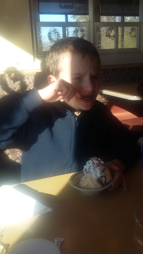 I only come here because my kids like it. The place always smells sour, like old milk, and the service is always slow.