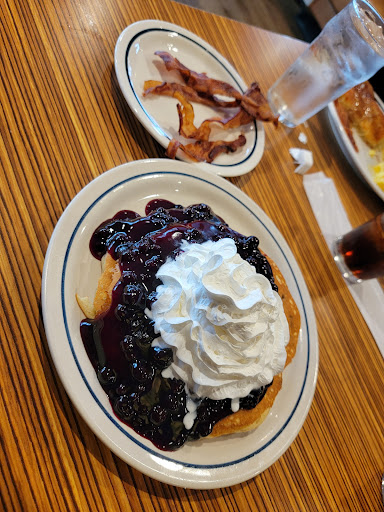The food was good,but the service is bad. Our waiter only checked in us twice in which she did not refill our drinks not only that, but I ended up having to ask the seater for help. When asked if she could bring a clean wash cloth to wipe up a mess my sim made she acted like she didnt know what I was talking about and have me a weird look. Also, we have been waiting on our check for 10 min now giving me plenty of time to write this review at ihop.
