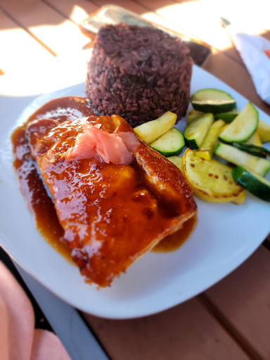 Beautiful location, if you can get a seat on the patio - do it! Staff were very friendly. Food was pretty basic bar food... burgers, fries, etc - Id recommend asking them to under-cook the burger a bit. Be prepared to be on Island time... drinks took about 20 minutes to arrive, and food arrived shortly thereafter. Wings were a hit. Well be back next time we are on the island.