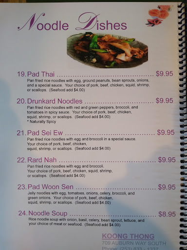 I enjoy the Red Curry here and the Phad Thai and prices are good, especially when compared to the Thai places in Redmond. Its not a fancy place but is a homey hole in the wall kind of family place. The owners are very friendly and make it a point to remember my familys interests and talk with us every time we are there. I have been there at least 50 times over the years and look forward to the Curry every time. Spicy.. If you add additional "stars" to the spicy factor.. the wife cooks one star higher that the husband. His 4 star is about the same as her 3 star. I ordered it at 4 once and she cooked so I got a 5 star... WOW, spicy.... But I loved it.