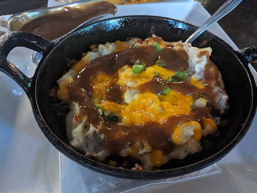 If youre looking for authentic British food, its not the right place to go. The fish and chips is not done in the traditional British style, and its 1 of only 3 actual British items on the menu. If you want american food with extra potatoes dubbed "Irish" its ok. My fish and chips was alright, and my boyfriend had the schnitzel. His whole plate was lacking seasoning and was fairly bland. The service was dull, the waitress seemed as if shed rather be any place than there. Maybe we caught it on a bad day, but even without the service or seasoning, Id rather go to a pub that actually serves authentic British fare.