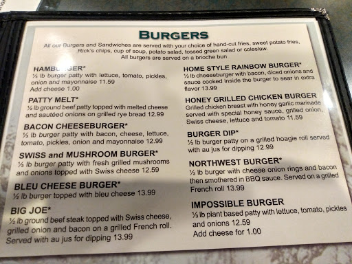 Great food, our sandwich maker, went way out of her way, and we were served a beautifully crafted sandwich. I took a picture of it, as it was so beautiful, and equally as delicious. I highly recommend eating at the Rainbow Café!!!