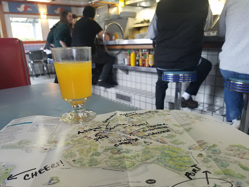 Classic 30s 40s era train car style diner, walking distance from the ferry to seattle, I had the Mediterranean omelet and my date had handmade corned beef hash and they were awesome. On the way to there is an art museum and niche shopping, safe friendly and dog friendly area, a must visit, there is also a high end antique store just a block away.