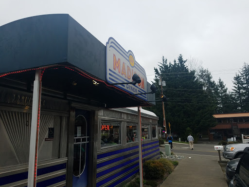 I visited Madison Diner whilst exploring the PNW this last weekend. Overall, I was throughly impressed. My burger was delicious, cooked exactly to order, and just the right size. The French fries were not crunchy, not soggy, but at a perfect medium. My meal was pleasantly priced at a good value. I was thoroughly impressed that all the burgers were available with a vegetarian patty. I understand thats not too unusual up here, but its an oddity where Im from. The only reason I didnt give this restaurant five stars was because of the service. Everyone we spoke with was perfectly pleasant and courteous, but it took a while to get anything done. My buddy and I walked in the door waiting for a table and there were three employees reviewing something on the register. I expected that once they finished, one would add our name to the list, but they all went separate ways. We didnt get any acknowledgement for about ten minutes despite being in arms reach of several, including the hostess that eventually seated us. Throughout the meal, the waitress came by the table a few times, but it felt like it may have been a little too long. Overall, Id recommend this restaurant. The burger made it so worthwhile. I wouldnt go here if youre in a rush, though.
