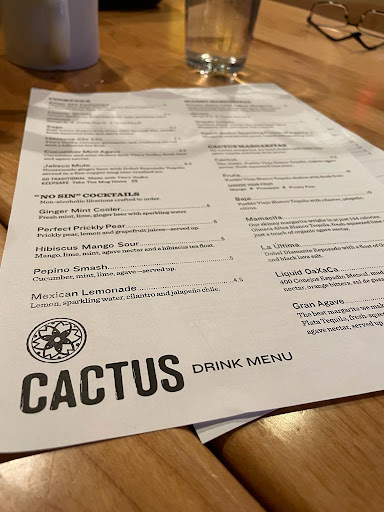 Vegan review Food: The menu does not have any deliberately vegan choices, but I was able to order the portabello fajitas with no cheese or sour cream and SUDDENLY VEGAN!! The portobello shined in this dish. Ive never had it better! It had a nice grilled flavor that worked well as a fajita filler! The full plate of options didnt lack for choice or flavor. Black beans, rice, veggies, guacamole, pico, and lettuce - this was a wonderfully fulling vegan dish. Service: They were insanely busy when I got there, and things took longer than would normally be expected, but it was all good. I ate at the bar and my bartender thanked me for my patience and understanding more than once. That was all anyone should ever need - he did his best given how busy it was and didnt pretend that it wasnt rush hour. Atmosphere: This was my first visit to Cactus, and it seems like a chain. The decor was tasteful with nods to traditional Mexican culture, but not obnoxiously so. The music was also from Mexico, and at a volume that wasnt distracting, but was present. There is a special room full of tequila that I didnt explore, but everything seemd great. Overall: Good spot for adult dining. Not really a kids place, but well done for adults! Im happy that it was simple to go vegan here, and meat eaters will find plenty to enjoy - but should try the mushrooms. ZOMG so good!