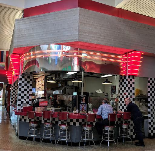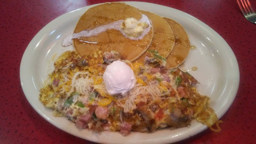 I am an aficionado of diner breakfast food, so Ive seen a lot of these places, but Ive never seen one in a mall food court before. As soon as I saw it, I told my husband that I would be dining there. I was disappointed that eggs benedict was not on the menu. That is usually my first order at any breakfast-oriented establishment. Instead, I ordered the Kitchen Sink Omelette with pancakes and sausage links. The pancakes were passable. The "omelette" was scrambled eggs, but it was tasty by any name. I didnt realize until after I had left that the sausage never came. The coffee was delicious, but I never got a refill. On any given day, lots of stuff can go wrong. I wont judge them completely by one visit. I will try them again some day, but I am going to be awfully disappointed if my next visit is similar to the first.