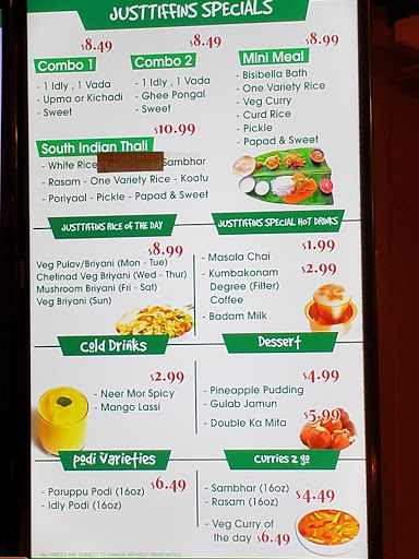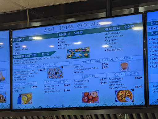 I did not know what Just Tiffins was, let alone that it was a vegetarian restaurant but I was more than just pleasantly surprised! The staff was a very helpful in explaining the menu and how to eat the food which I must say was absolutely amazing! I ordered the Curry Leaves Dosa which was like a giant Tri folded crepe of deliciousness stuffed with spiced potato, to be dipped in lentil soup that had subtle curry flavoring and just enough heat to keep you coming back for more. On the side I had something called Medhu Vada. It was a peppercorned fritter that came with dipping sauces. I am very much a meat n potato kind of guy and would not typically pick this restaurant. That being said, I cant wait to go back soon! Thank you staff of Just Tiffins!!!