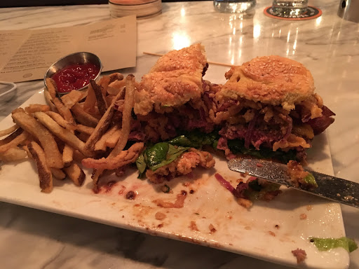 Ive come here before in the past and it was good - stupidly pricey ($18 for a burger?) but I could put up with it on nights I really wanted a good burger. But never again - had the worst burger of my entire life last night. Burger was severely undercooked, there was a weird gristle that I bit into on every bite, and when I took off the top bun the lettuce was clearly old and it just looked disgusting. Instead of eating it, I just threw it away. The kicker is that my girlfriend ordered a burger with a vegetarian patty and it was just as bad in its own way. So this apparently is what they now consider a quality $18 burger. Sad part is that this isnt a one time thing, the last time I went it was just as bad - although then I witnessed an employee quitting and walking out so I gave them a pass. Now Im thinking maybe that quitting employee had a point. I will never, ever go back. Just go to Din Tai Fung if you want consistently quality food for a higher price.