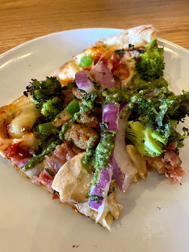 Personal wood fired pizza with unlimited toppings served fast. They have added in flavored breads too. Small beer, wine and cider selection. Lines can get long but its worth the wait. Expect a big hello and over the top welcome every time. I load up meat w spicy peppers.