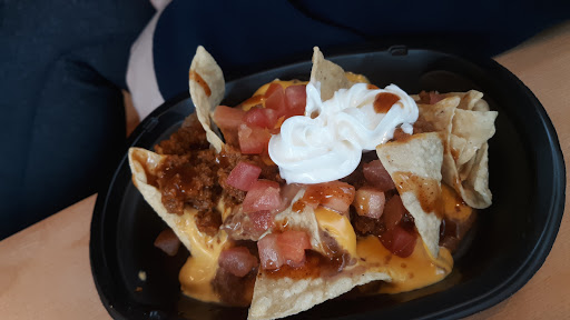 This was easily the worst Taco Bell franchise Ive ever been to... the people were very nice, but it only had about half the standard menu. I ordered crunch wraps and every other Taco Bell I have been to they are thin and saucer sized and gently grilled. For some reason at this establishment they were almost as thick as they were wide they were a ball about the size of my fist and they were burnt on both sides. They also did not have the standard potato round tater tot things... Instead they had these little goo-ball Donuts... I was not impressed