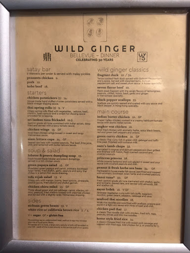 Love Wild Ginger. This was my first time at the Bellevue location. Started with Green Dragon and Spicy Pineapple Margarita cocktails. GD was excellent and the Pineapple Marg was good, but a bit too spicy. Kobe beef satay was awesome and wish we wouldve ordered more. Fragrant duck with buns and Hanoi tuna were exactly as expected and delicious. Sichuan green beans are always a must when eating here. Was given a free slice of Rich Chocolate Torte as is was my birthday, but wouldve gladly paid for it as it was fantastic, perfect for sharing. Will be back.