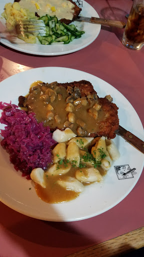 My brother and i really enjoyed our meal here. Staff was super friendly and checked on us regularly. I had the Jager Schnitzel with mashed potatoes and red cabbage. Really good! Looking forward to my next return.