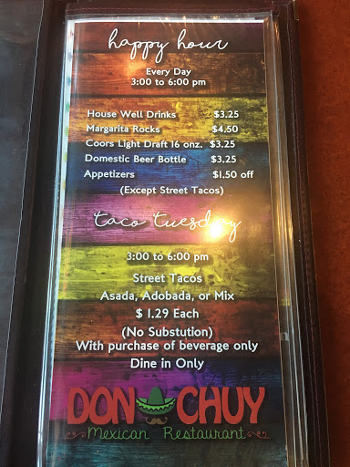Excellent arroz con pollo, the margaritas were tasty, and the salsa had good flavor. Daily happy hour and taco Tuesdays.
