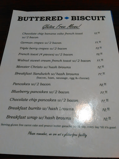 My official Buttered Biscuit Restaurant rant...I mean review: So, my mom and I decided to try the Bonney Lake BB today....never again. We get there and it smells like Mexican Food due to it being in the old Mazatlán building. Usually, me being a Mexican fanatic, wouldnt have minded, but I was on the mission for pancakes, darn it! After finally being seated, our menus were printed pieces of paper stapled together, slightly crumpled, stained and so many spelling errors....I mean, "backon," I had to do so many double takes and deciphering, Indiana Jones wouldve been proud. We then waited for our food for about 30 minutes, which wouldnt have been too bad, but there were only 3 other people in the whole restaurant. So...really? Then the grand moment...that glorious feeling of your food being brought to you! I pick up my silverware and low and behold...it was dirty. Not like, smudges around it, like realllllly dirty, food stuck to it. For this germaphob, you can imagine that didnt go over well. But to get anything you wanted was ridiculous, our waitress never helped, I didnt get any syrup for my pancakes