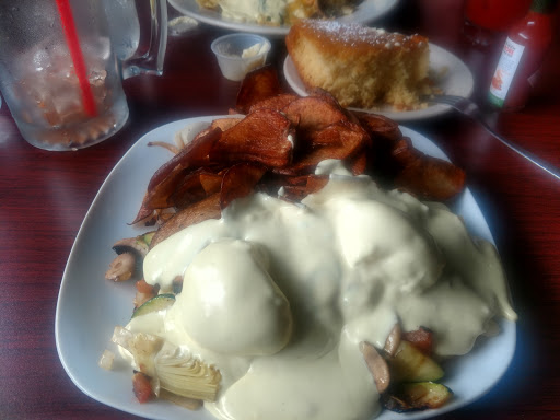 This is not a place to eat if youre trying to be healthier. Everything comes BEYOND doused in sauces to the point that you cant even taste what you ordered. For the cost you would think it would be better. You may want to request at least half the amount of sauce. The oatmeal comes with squishy frozen berries, drentched in syrup, and with a dallop of whipped cream so if you were trying to be a little healthier watch out for that. Even if we wanted to go all out on a delicious greasy yummy breakfast we would never pick this place. I reccomend you go elsewhere.