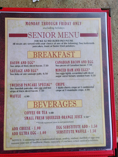 Great service, but the food is pretty average, and its only up to that level if you add back the salt that they are apparently cutting out for the more senior patrons. There are much better breakfast places, but if you need a sit down place open early, give it a shot.