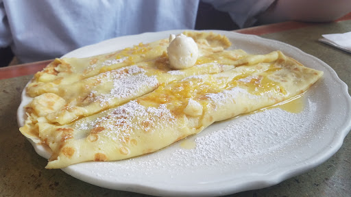 Awkward server and the meal we had was down right gross. The bacon was somehow burnt and soggy (how?!) Also costs $5.50 for 4 pieces. Nothing comes with sides so what seems like a moderately priced dish was actually just 1 waffle nothing else. The crepes my friend had were absolutely awful; fake strawberry "preserves" with an overpowering orange flavoured fake syrup. Ordered a side of home fries received hash browns asked about it and the server told us those where home fries, we saw another table get served actual home fries.