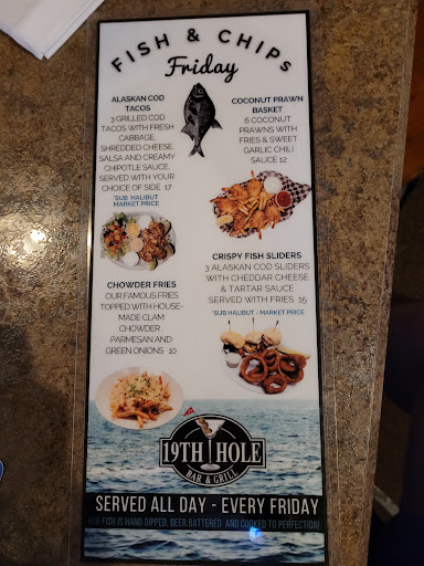 Very friendly staff, great service and excellent food. I would highly recommend the 18th Hole. 5.99 Steak night every Monday.