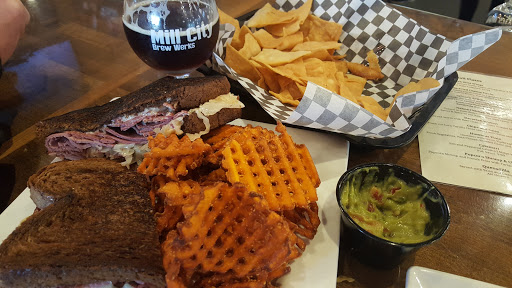 I like Mill City and have always had good experiences here. Whenever we come out to Camas we usually stop in to see whats on tap (also only brewery in downtown Camas). Beer - 3 - The beer is pretty decent with a palette ranging selection. The hoppier stuff is probably my favorite Food - 3.5 - The food has always been very solid, although I find it to be on the slightly pricey side. Sandwiches are in the 11-15 dollar range. I find this particularly true for the buffalo chicken sandwich which is just tenders on a bun...and like 13 bucks. I would give it a 4 but knock a half star because I find it to be a little pricy with no value options. Atmosphere - 4 - I love that they have the mash tun and boiling kettle right there and you can see them brewing. It fills the place with a wonderful grainy smell as well, like an actual brewpub should be. The service is usually good and friendly, and the owner is very nice. There is usually a range of groups from families, to older couples, to younger groups. What you would expect in Camas. Overall - 3.5 rounded up to 4. Worth a visit if you like brewpubs and expect a higher class of grub.
