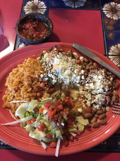 Ive had really good Mexican food and Ive had poor Mexican food this restaurant is at the very poor end. Chips are pressed formed baked not real tortilla chips. The chili verde was tasteless the chili colorado was a tomato-based sauce. Chile relleno was God awful Im not sure how to really describe it. Beans were tastless,probably the low fat canned variety.The salsa though was out standing.