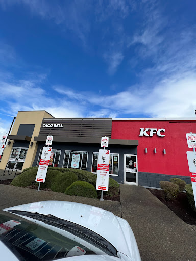 I always feel bad giving bad reviews, but sometimes, I want to help out my fellow man by cautioning them against wasting their money. Suffice to say, if the Colonel walked into this KFC hed be appalled at what they serve and call it "finger licking good". The chicken is small, overcooked, dry and overpriced. The bucket is two times larger than it needs to be for a 10 piece. Do yourself a favor. spend half as much money, drive the two blocks and your chicken from Safeway. Their chicken is bigger, juicier and cheaper. I was duped too many times. No thanks. In all honesty though- my son loves the Taco Bell. Eats it all the time and loves it. So if you like TB, then you might like it here, but stay far away from the chicken.