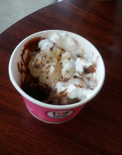 They can scoop ice cream for cones but they for some reason cant make a Snickers sundae without ripping you off and giving you a cup of syrup. We asked them to make a new one because it was a ridiculous amount of syrup for the one scoop of ice cream they put under it when its supposed to have 3 scoops and they said no. So dont order a Snickers sundae unless you want a gooey cup of caramel and whipped cream