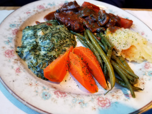 This restaurant provides a nice atmosphere with good service and outstanding food. Everything is flavorful and freshly prepared. Entrees are served with potatoes au gratin, haricot vert, sauteed carrot sticks, and creamed spinach. Their soup, bisque, and salad are simply wonderful. To top it off, the price is reasonable.