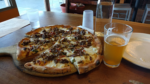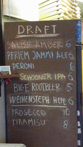 A foodies pizza joint in Edmonds! Castelvetrano olives, prosciutto, fior de latte mozzarella, organic veggies, carmalized onions, chantrelles, pancetta, etc. The ingredients are all superb, delicately wood fired, thin crust. Dont let the outside appearance deter you, step inside and give it a try. The pies are imaginative and delicious. They also serve beer and wine, featuring my favorite local Edmonds brew from Gallagers, the Broken Stones IPA!