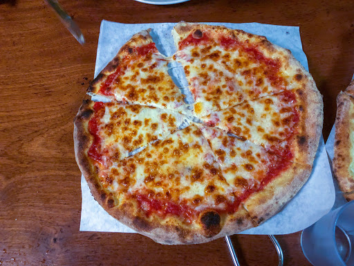 First time visit based on positive reviews. My large pizza, funghi and artichoke split came to $35, including a beer, $5, while I waited. There werent many mushrooms but the pizza smokey wood fired dough made it worthwhile. Its pretty much a one man owner operation with a helper/cashier, so service can get a little thin with significant wait time. Im back to Pagliacci for the difference in price and service. It will interesting to compare.