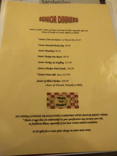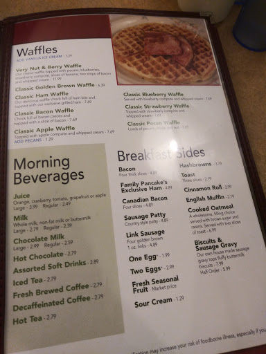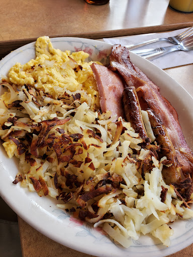 I like it here. The food is good. The staff is kind. The place is clean but feels like a 80s Dennys full of elderly, which is cool too. The only thing is the prices are really high and I have been charged over $100 for 3 people and one 4yr old child eating simple breakfast side orders. Parjing is lil rough too. My only advice is to offer "ORGANIC FOOD". Cancerous Meat and Pork products and Animal Bi-Products are in almost every combo meal on the menu so it has that old timer Western American feel which is vool but suoer outdated in a NW cultyre of educated eaters. I love pork and meat and animal fat and butter etc but we were in a time when we know better and a time whe restaurants can and do offer better. Hundreds of restaurants now offer organic and vegitarian options to the old alternative of unhealthy food. Just a suggestion but I love this place when I feel like some greasy frech toast and eggs with my sons chocolate and banana covered pancakes!!