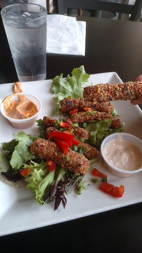 After eating here, were still looking for that GREAT burger place! This would be a good place to bring kids, although a little more pricey option (unless you get the kids eat free menu). We sat in the Bar Area, and after a slow start (we had to wait 5-7 min to order - too long in my opinion as we almost left), the food came out quickly. I must say, the Fries are THE BEST!! Greasy and salted just nice. The Bacon Cheese that the BF ordered was good. Not as good as Bobs, but still good. Unfortunately, the Deluxe Chicken Chibatta, nor anything else with the "Pico de Gallo" will not be ordered again. It was good, but because of all the ingredients, my bottom piece of bread was all soggy. It disappointed me as I was really excited to see a soft chibatta roll! The Bacon was crisp and thick, but just too many items on it made it harder to eat. Also, next time Ill ask for no shredded lettuce. With all the other fancy ingredients, the lettuce was a bit of a joke. Plus, after the slow start, the service was much better. If you are looking for a gourmet style burger, good atmosphere, local and you want to sit away from the kids, this is a good place to try!