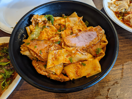 I love the hot oil seared biang biang noodle dish. Pro tip: add the stewed pork to your noodle dish. You wont regret it. If youre still hungry get a spicy cumin beef sandwich.