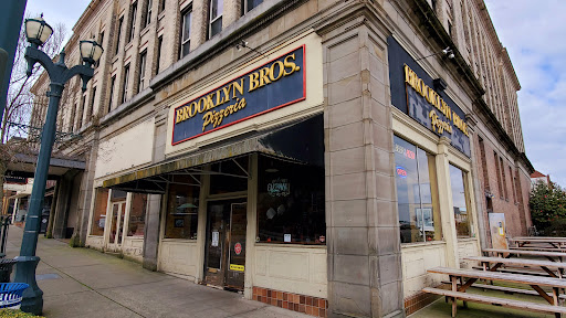 Refuse to stoop to chain pizza slop? Looking for good a good pie? Go here, and yes they do slices (11-3, I believe) I am no pizza connoisseur, but like good art I know what I like (a solid foundation with varieties I can build my own from and good gourmet style pies) and what I do not like (plain, chain-style pies with no gusto or creativity and over the top gourmet pies that are too much a chore to waste time with) . Brooklyn Brothers Pizza offers both of what a LIKE, and none of what I do not like. Their thin crust, traditional New York style pies are excellent, unique creations offering an upscale selection of unique meats, vegetables, and even specialty cheese choices. Alternately, you can choose from their signature pies with combinations that complement one another brilliantly, though may not have been on your personal list... This offers a nice challenge to me, as I trust BBPs judgement since their basic pies are so well crafted - am willing to go on a limb, and have been richly rewarded for doing so. BBP also offers a very nice Sicilian deep crust pie, though I am not so much a fan on principal, having a preference bred by years of Williamsburg and Park Slope indulgence...Thanks, BBP- you fill a constant yearning for a decent slice! So support a good shop- someone in downtown Everett trying to offer a slice of culture and flavor in Everetts wasteland of poor culinary offerings.