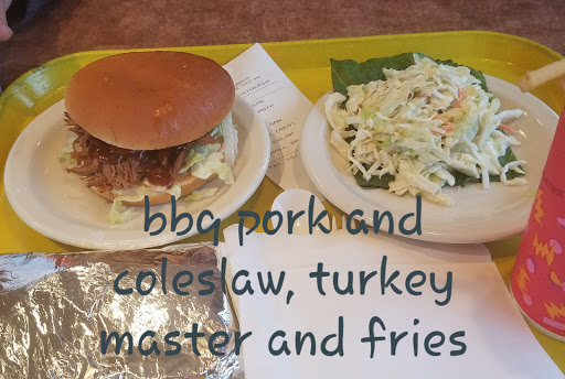Friendly staff, clean dining room. I love their pulled pork sandwiches. The home made slaw veries, but is mostly good