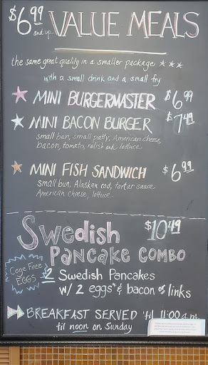 Northwest favorite for many lunch or dinner items. This Burgermaster is nice because it has indoor a indoor dining room. Serves breakfast also which is a plus.