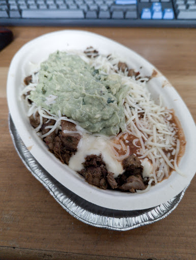 Good food and had a good promotion going. Its a little expensive if you get anything more then just the basic burrito/salad. My wife was displeased with the steak but I enjoyed it. They usually dont have much of a line but if they do its a slow one. We waited about 20 minutes with maybe 13 people ahead of us in line.